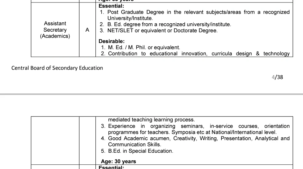 Desirable: 1. M. Ed. / M. Phil. or equivalent. 2. Contribution to educational innovation, curricula design & technology mediated teaching learning process. 3. Experience in organizing seminars, in-service courses, orientation programmes for teachers. Symposia etc at National/International level. 4. Good Academic acumen, Creativity, Writing, Presentation, Analytical and Communication Skills. 5. B.Ed. in Special Education.